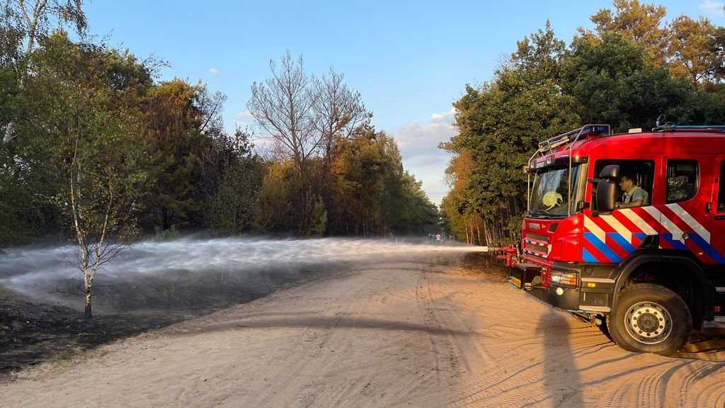 De brandweer blust het vuur in het bos. - Foto: NewsUnited Meer bermbranden