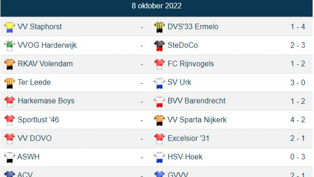 Sparta staat inmiddels in de derde divisie op een 13e plaats met 12 punten uit 10 wedstrijden.
