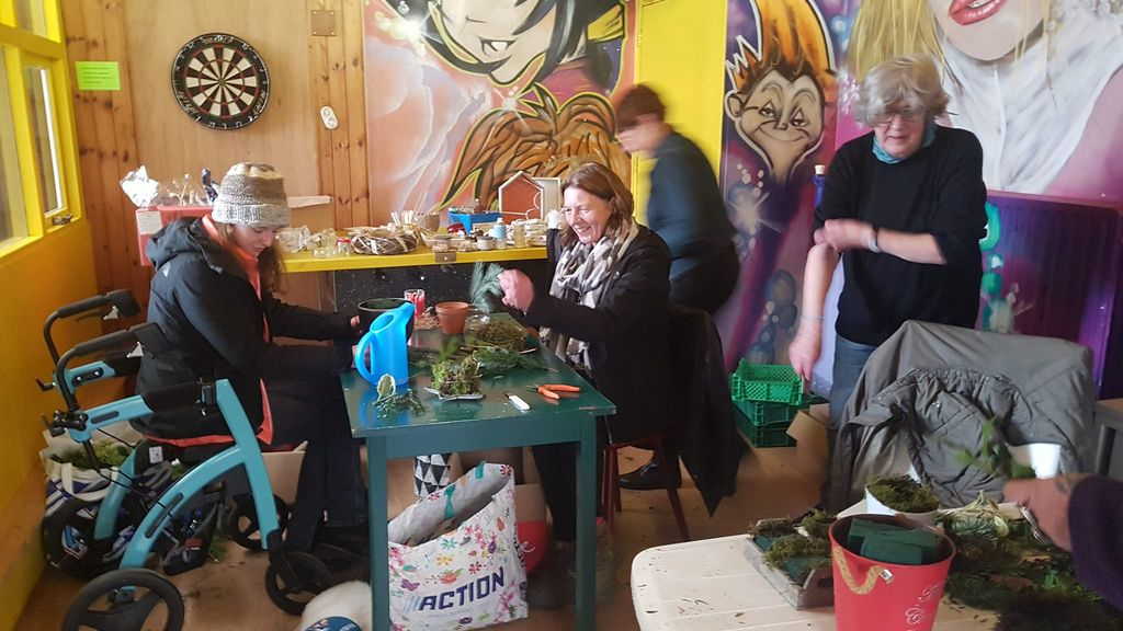 NUNSPEET - Het was woensdag 21 december een gezellige dag in de kerstsferen bij Inloophuis Nunspeet, in en rond het gebouw de Boemerang in Nunspeet. Ondere andere muziek, lekkere winterse versnaperingen, kerststukjes, een weggeefkraam en natuurlijk alle aanwezigen, maakten de gezelligheid.