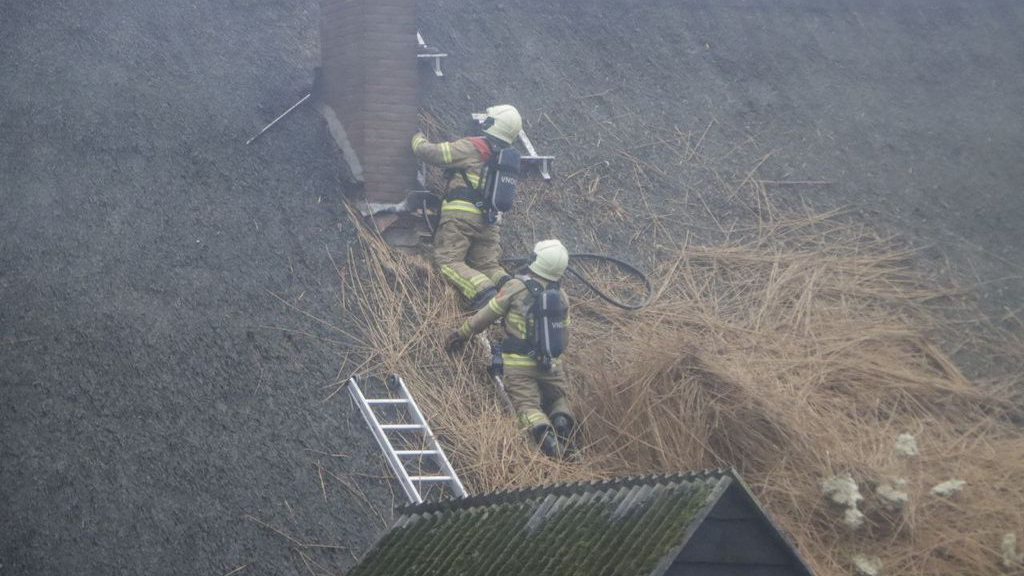 Schoorsteenbrand bij huis met rieten dak in Hierden