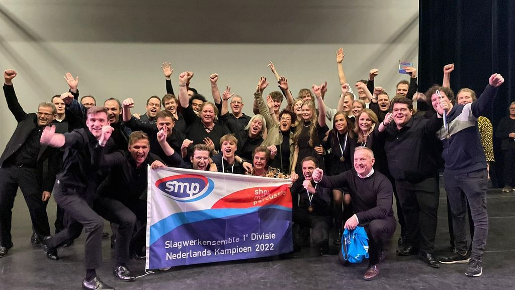 ELSPEET - Zaterdag 11 februari streden negen ensembles in Theater Orpheus in Apeldoorn om de Nederlandse titels. De hoogst geklasseerde slagwerkensembles van de regionale wedstrijden in 2022 gingen met elkaar de strijd aan in vier verschillende divisies. Slagwerkensemble Elspeet nam deze dag deel in de hoogste divisie en zette een prachtig resultaat neer door Nederlands Kampioen 2022 te worden.