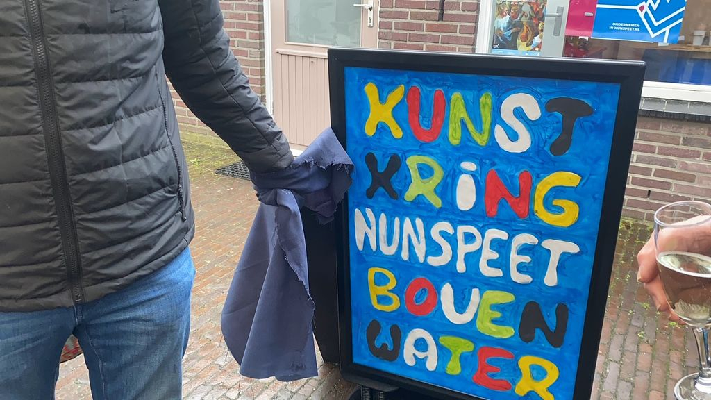 NUNSPEET - De pop-up expositie van de Kunst Kring Nunspeet werd op geheel eigen wijze geopend. Om 11:00 uur werd er, in de regen, geproost met champagne en werd het expositie bord onthuld. De expositie “Boven Water” is een tentoonstelling met verschillende werken van lokale kunstenaars waarbij het doel is dat je even in een andere wereld stapt. De naam pop-up expositie is gekozen omdat elke maand een andere expositie te zien is op een andere plek. Op dit moment is er tot en met 31 maart aan de Marktstraat 11a “Boven Water” te bekijken.