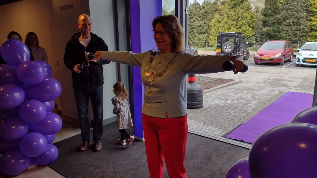 NUNSPEET - Burgemeester Blom heeft de nieuwe sportschool Anytime Fitness officieel geopend. Terwijl er op de machines en met de gewichten gesport werd, knipte zij het rode lint door. Clubmanager Pascal ten Bras is blij dat de sportschool nu officieel open is: ‘We zijn heel trots op het mooie pand dat we hier hebben en hopen veel Nunspeters aan het bewegen te krijgen!’