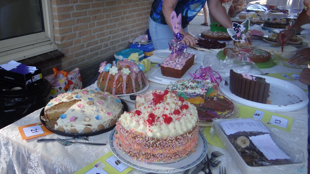 Er was van alles te zien, te beleven en te kopen. Zo waren er veel taarten gemaakt om te verkopen, maar ook was daar een prijs aan verbonden. De heerlijke taarten werden gekeurd door André en Janny van Duin van "heel de Arend en de Wingerd bakt". Verder was er van alles om te eten en te drinken en waren er heel veel spelletjes voor de kinderen, springkussens, rad van avontuur, gelegenheid om foto’s te laten maken en meer. Iedereen was mede dank zij het heerlijke zonnige weer in opperbeste stemming. En nu nog twee weekjes om naar het einde van het schooljaar toe te werken en dan vakantie houden.
