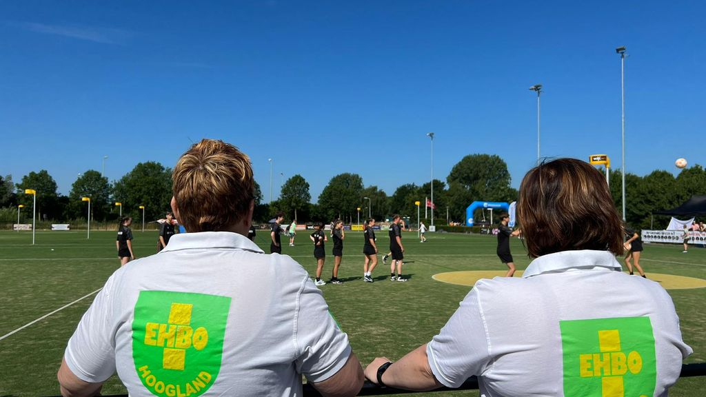 Vanwege de extreem warme weersomstandigheden gaven de dames van EHBO Hoogland het advies aan spelers en supporters om voldoende te drinken, te eten en de schaduw op te zoeken wanneer dat mogelijks is om oververhitting te voorkomen.