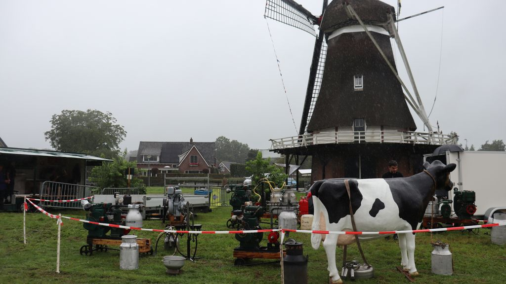 HULSHORST - Rondom het terrein van molen “De Maagd” in Hulshorst hield de Stichting Oldtimer Club Hulshorst zaterdag haar 12e Oldtimershow. Dagen van opbouw met prachtig weer waren aan het evenement vooraf gegaan, maar deze ochtend hield het helaas niet op met regenen.