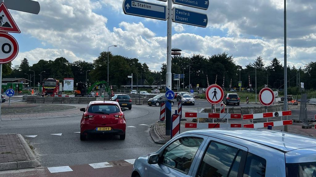 Komende vanaf de spoorwegovergang en de Molijnlaan komt men via een nieuw aangelegde rijbaan op de rotonde. De Stationslaan sluit nog gewoon op de rotonde aan, maar vanaf het industrieterrein en de Nijverheidsweg is er tijdelijk slechts één rijbaan de rotonde op, waarna men gelijk scherp rechtsaf moet om naar de Elspeterweg en de spoorovergang te gaan. Dit kan op de drukke momenten, als de spoorwegovergang gesloten is, voor enig oponthoud zorgen. Houd daarom de rotonde bij eventuele filevorming zoveel mogelijk vrij, om het overige verkeer op de rotonde niet te hinderen. Lastig, maar wel mooi dat alles toegankelijk blijft.