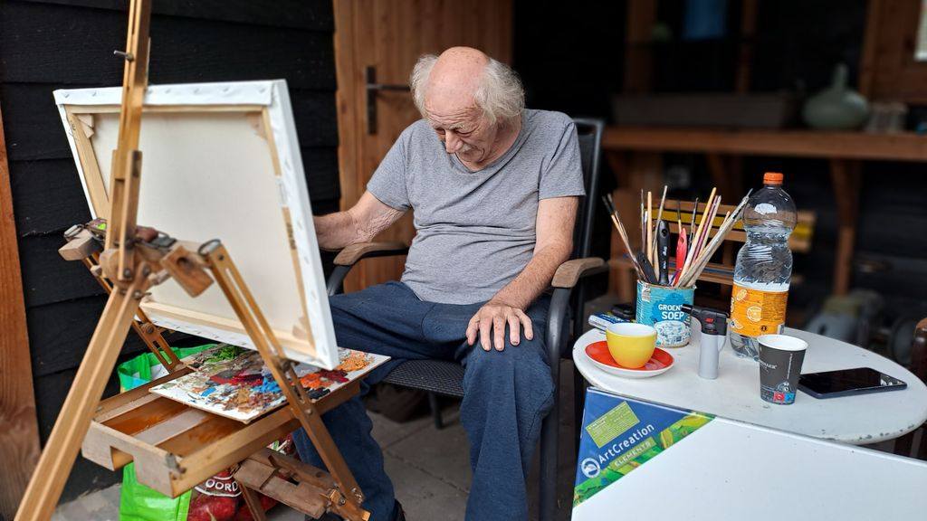 Afgelopen week kwam je allemaal verschillende kunstenaars tegen in de belevenistuin van de Ittmannshof, bewoners én zorgpersoneel hadden veel belangstelling en kwamen regelmatig even de tuin in om te kijken wat er beleven viel. Er was zelfs een bewoonster die vroeger zelf ook schilderde, zij heeft nog een mooi schilderijtje kunnen maken.