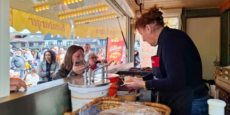 Bij diverse eettentjes in Nunspeet wordt lekker geluncht! En de makers? Die oefenen vast voor de eetwedstrijd later vanmiddag op het marktplein van Nunspeet.