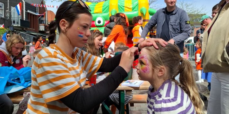 Het middagprogramma op Koningsdag in Nunspeet is inmiddels van start gegaan. En er worden mooie kunstwerken geschminkt hoor.