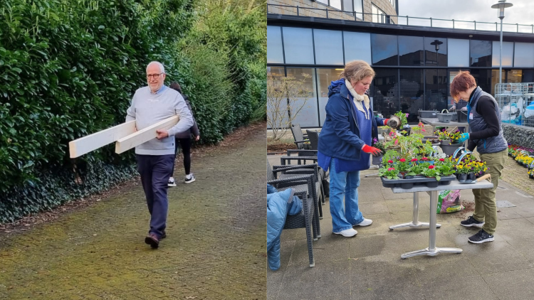 In Harderwijk worden op meerdere locaties projecten georganiseerd voor NLdoet. Zo ook bij de woonzorglocatie Weideheem. Karin Heijnen is welzijnsmedewerker bij Weideheem en coördineert de dag. “We gaan vandaag aan de slag met het schoonmaken van de terrasjes en planten van bloemen”, licht zij toe. “We proberen de bewoners er ook een beetje bij te betrekken, door ze bijvoorbeeld te laten helpen met de plantjes als ze dat willen.”